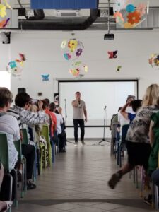 U petak, 13. lipnja 2025., održana je završna školska priredba kojom smo na poseban način zaključili još jednu uspješnu školsku godinu. Priredbu je otvorila ravnateljica Irena Dukić pozdravnim govorom, a potom je uslijedilo iznenađenje – nastup poznatog zadarskog pjevača Ivice Sikirića Iće. Njegove dvije pjesme oduševile su sve prisutne, a posebno učenike koji ga i inače rado slušaju.
